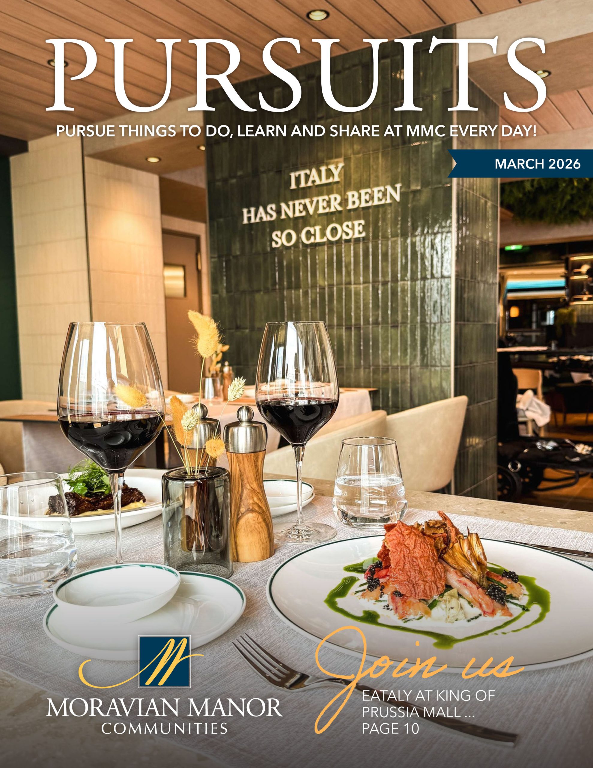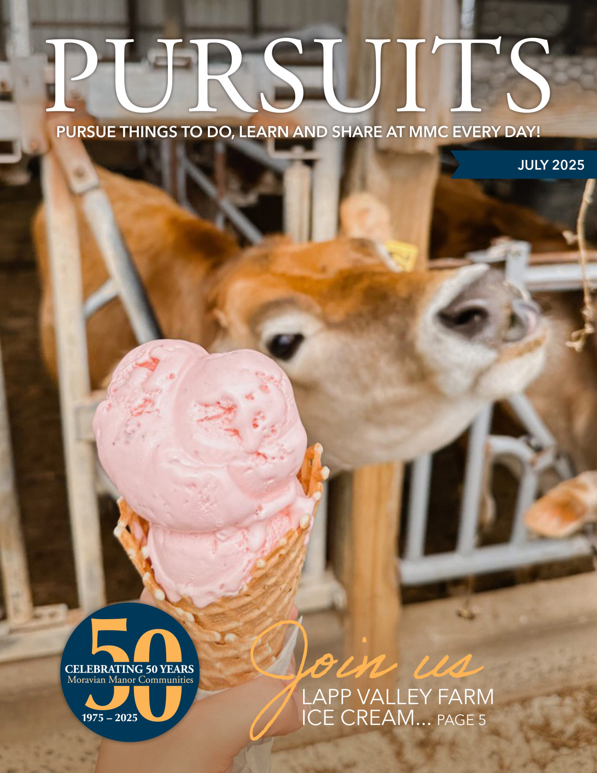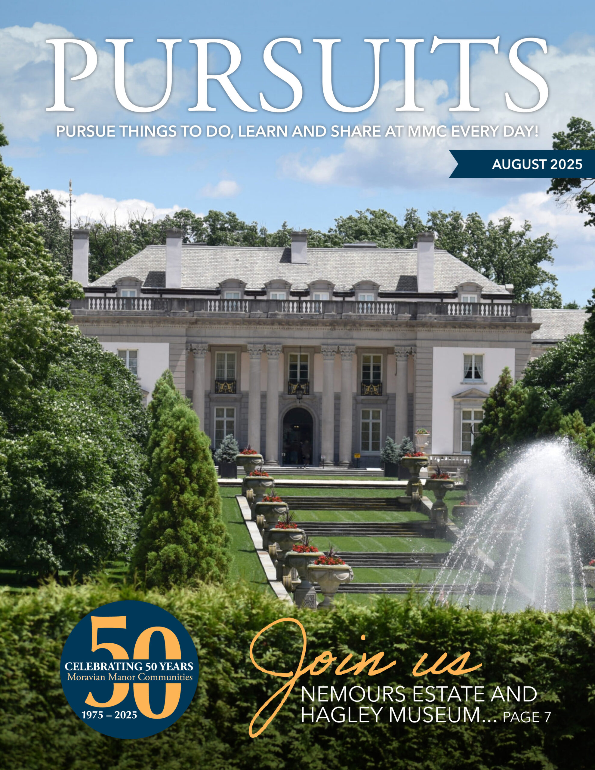 Published monthly, Pursuits is our community lifestyle magazine that highlights all the programs residents can pursue…from things to do, learn and share at Moravian Manor Communities. Residents use this magazine to discover favorite pastimes as well as new opportunities to engage with other likeminded residents. Programming is available to residents and wait list members upon availability.
