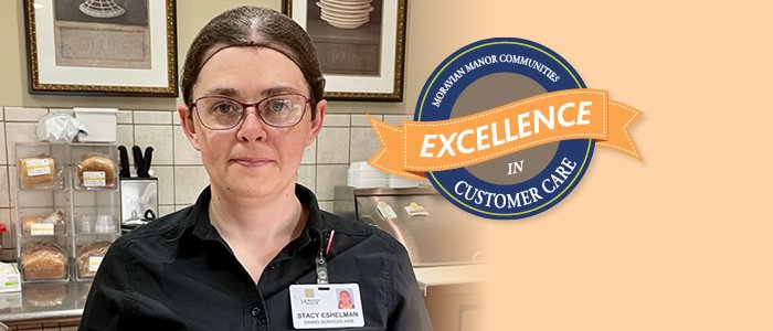 “When I think of Excellence in Customer Care, my mind immediately goes to Stacy Eshelman. For as long as I can remember, Stacy has been a reliable member of the MMC team. I look forward to my visits to the café…not just for the great food, but because I enjoy seeing Stacy and very much appreciate her pleasant attitude and friendly smile. When I’m in line, I see how patient and attentive she is to the needs of residents. She always goes the extra mile to help them. It is evident that Stacy takes pride in all that she does and enjoys her work here at MMC.”